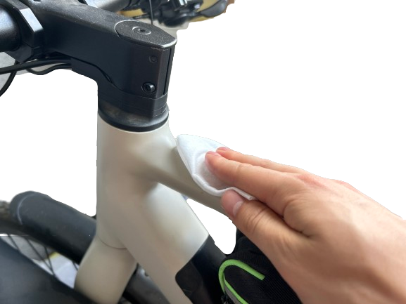 1. Выберите подходящее место на раме велосипеда или самоката. Мы рекомендуем наклеивать стикер на самое видное место.