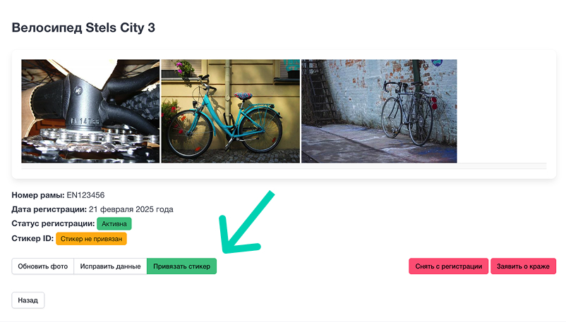 Для удобства можно прикрепить фотографию QR-кода со стикера, перед привязкой проверьте что ID правильно распознался с фотографии.